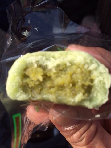 君島さんからずんだ饅頭みたいなの1個もらったよ。