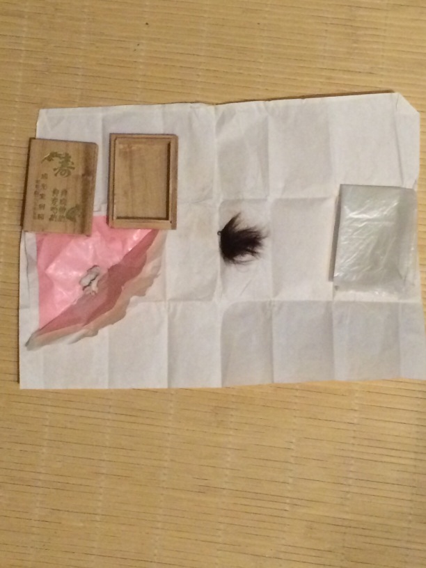 中身は私を出産した時のへその緒と生後四十一日目に切ったのうぶ毛!(◎_◎;)