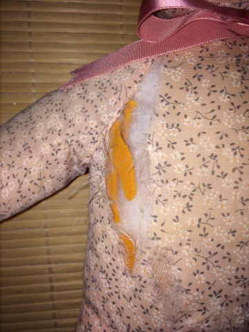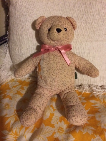 さっきミドルピンクベアがケガしたよ(≧∇≦) つきょがふざけて引っ張るから破けちゃったよ