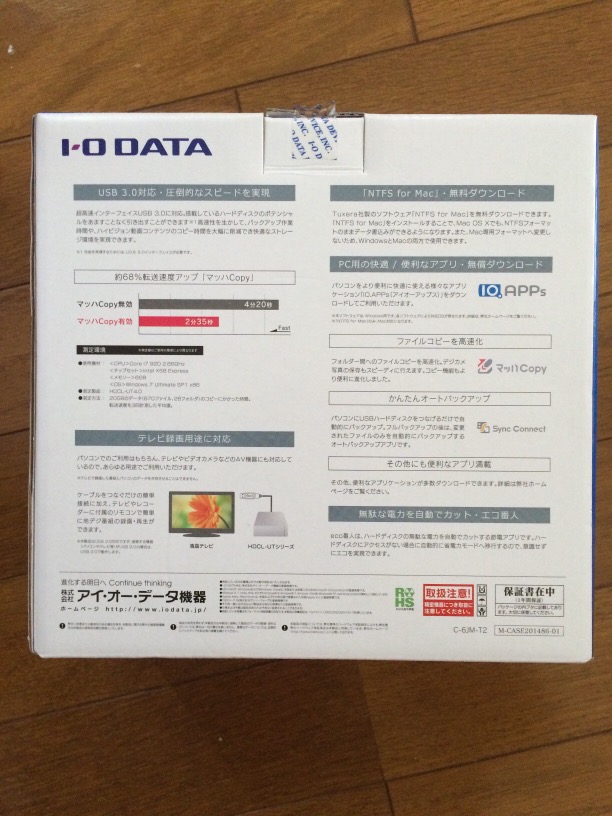 そして…予感した通りjcomにお願いしたHDDは、バッファローでもなく、東芝でもなく、I・O・DATAがやって来ました。