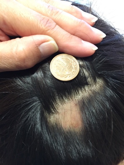 [diary1008] 2016-05-21 2016年5月21日 by sacci コメントする 10円ハゲが出来てたよ!(◎_◎;) いつできたのかな? 一昨日の夜気がついて、昨日、皮膚科に行って来た